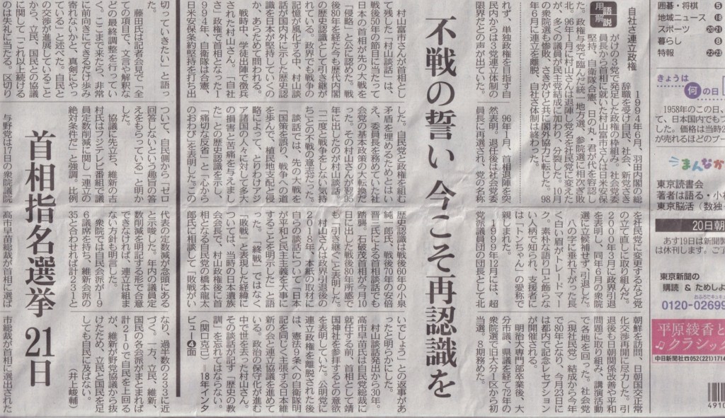 伝統ある社会党の流れをくむ社民党には村山さんの本音のご遺志を継いで再生復活して欲しいと願わずにはいられません。
