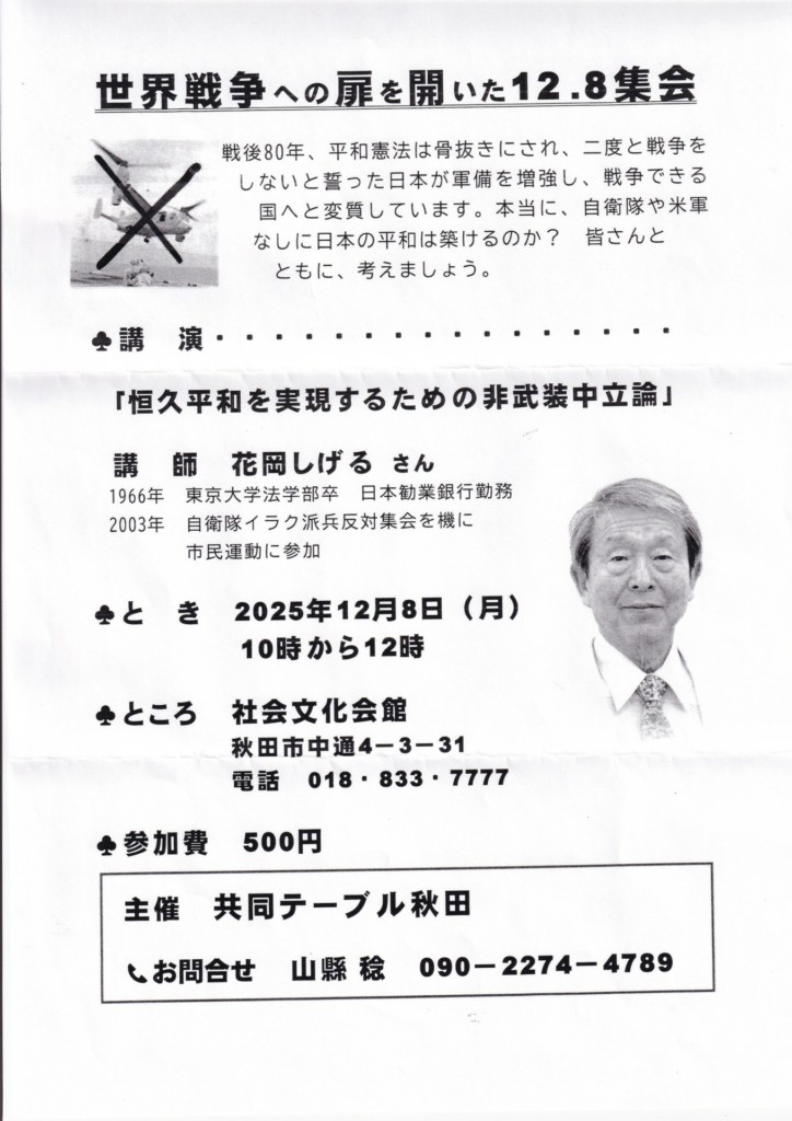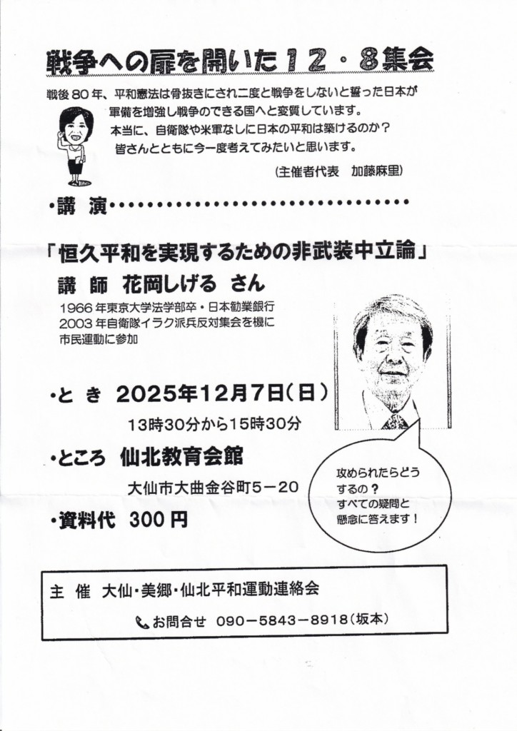年内の残された日々私は出来るだけ非武装中立実現のために世論の喚起に努めます。
