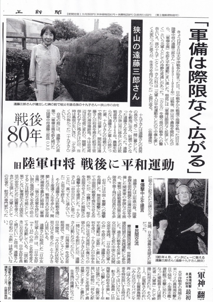 12月8日を記念する埼玉新聞の佐藤達哉記者による渾身の取材記事(添付)をお読みください。